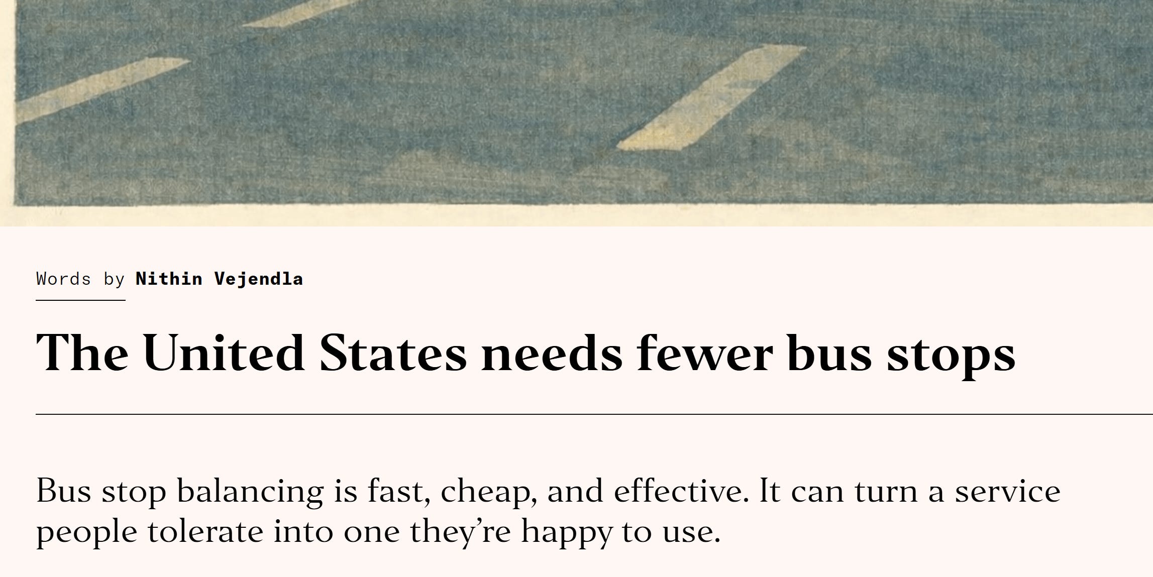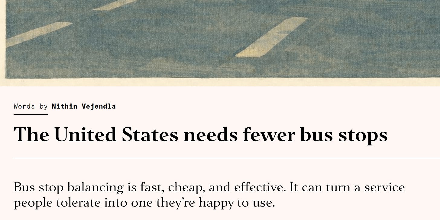 I like this piece and it’s got the duel benefit of making salient points and being well-written. Transit planning and operations is a game of tradeoffs: coverage versus speed, cost versus service, revenue sourcing versus spending, etc. If you can think of one problem, I have a handful of equal and opposite problems that don’t fit neatly into a single tradeoff. This is where good community problem ID comes in. Yes data and map shed analysis is helpful for determining optimal solutions, but our models can’t capture stories on their own. We need it all and Nithin is right.